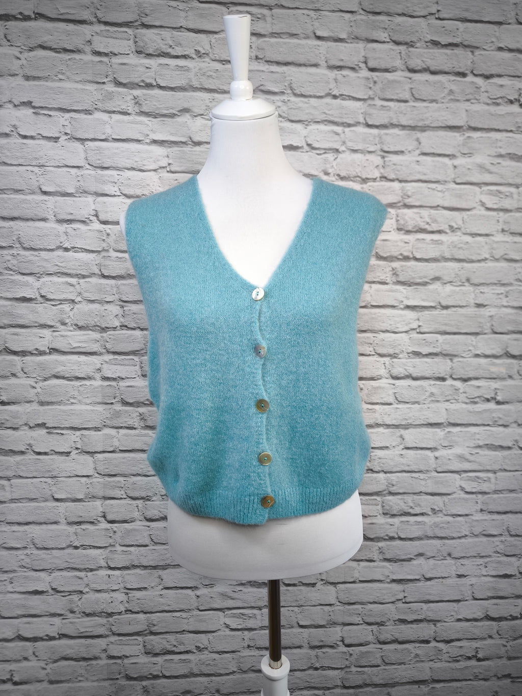 Nachhaltige Alpaka Strickweste in BIO QUALITÄT - DUNKLER FRÜHLING SOMMER