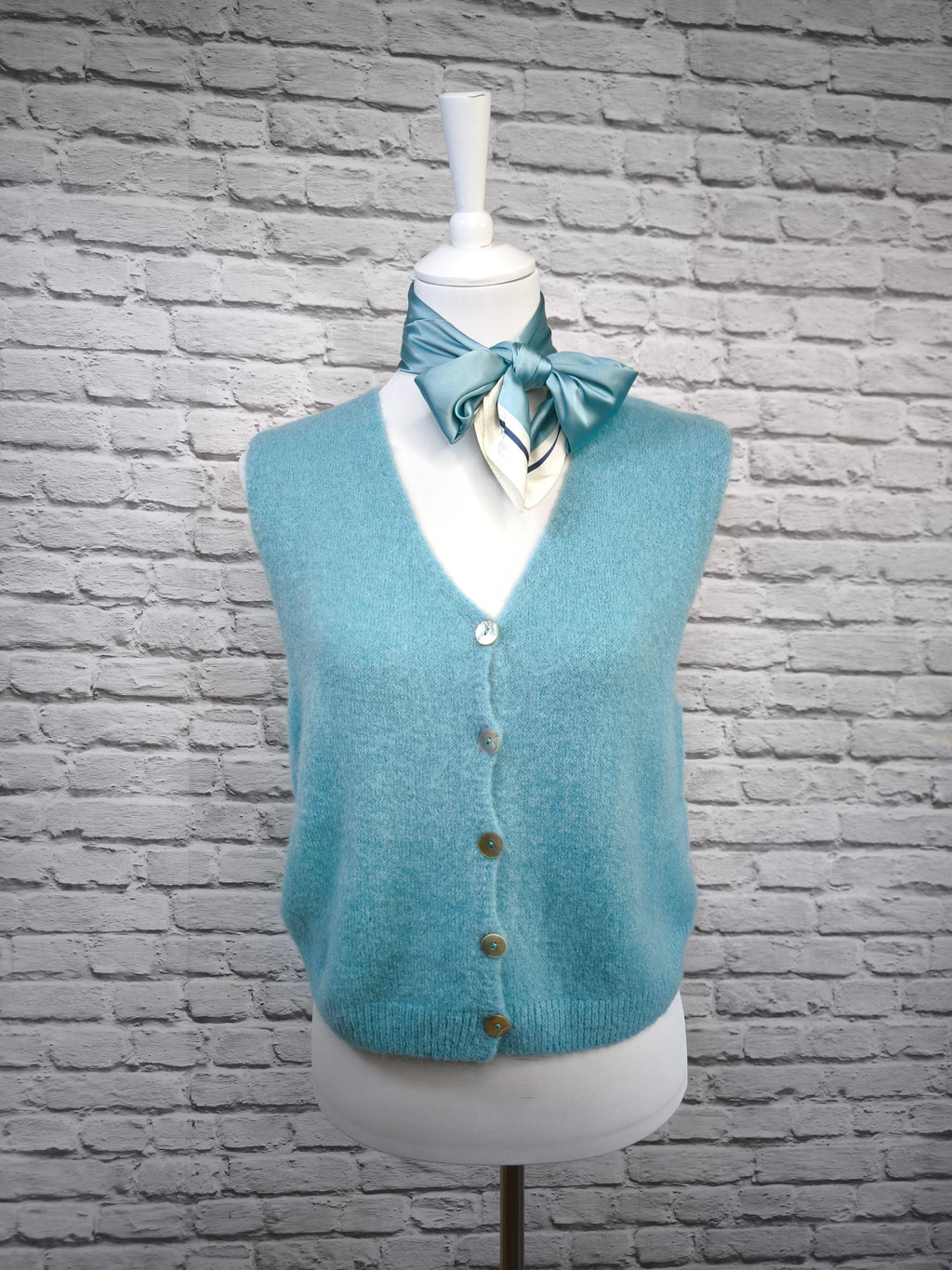 Ob als wärmende Schicht über Blusen oder als stilvolles Basic zu Jeans – diese Strickweste verbindet Komfort und Eleganz mit nachhaltiger Qualität.