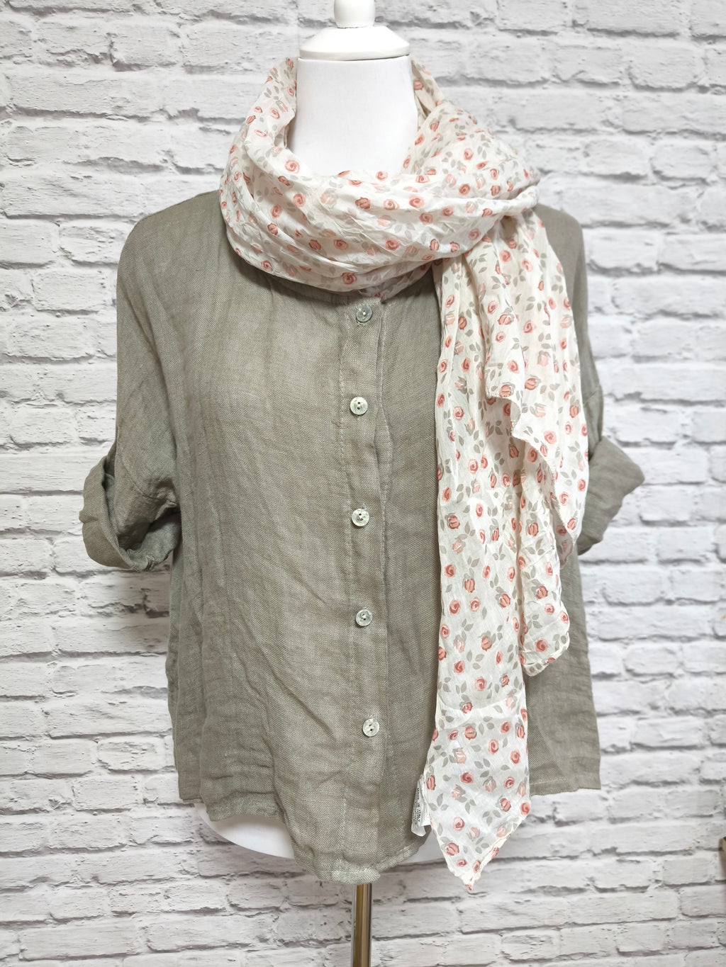 Kurzarm Leinenbluse runder Ausschnitt- Taupe