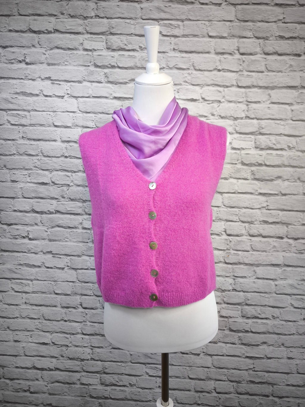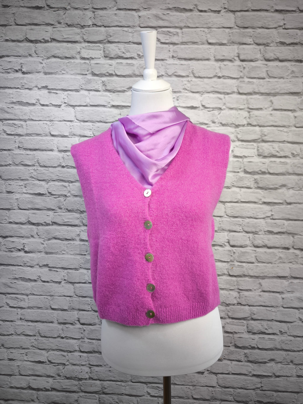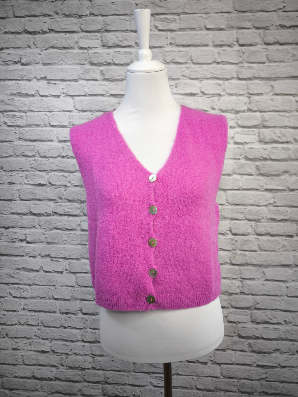 Ob als wärmende Schicht über Blusen oder als stilvolles Basic zu Jeans – diese Strickweste verbindet Komfort und Eleganz mit nachhaltiger Qualität.