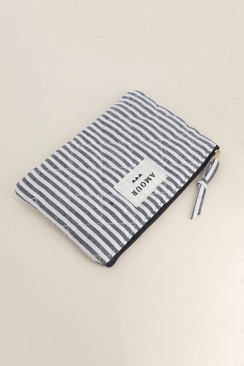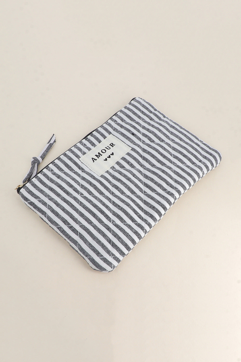 Diese hübsche, gerippte Tasche mit floralem Print und dem Schriftzug „LIEBE“ samt drei kleinen Herzen ist ein praktischer Begleiter für jeden Tag. Ob für Kosmetik, Pflegeprodukte oder kleine Alltagsgegenstände – sie bietet ausreichend Platz und sieht dabei stilvoll aus.
