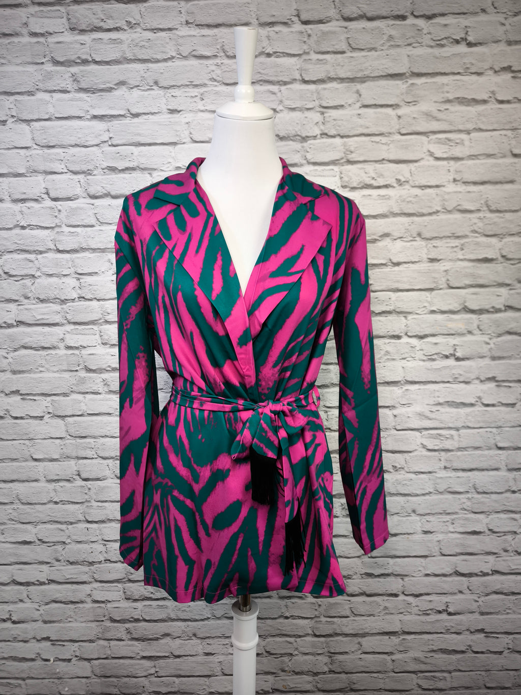 Kimonojacke mit Bindegürtel – auffälliger Animal-Print